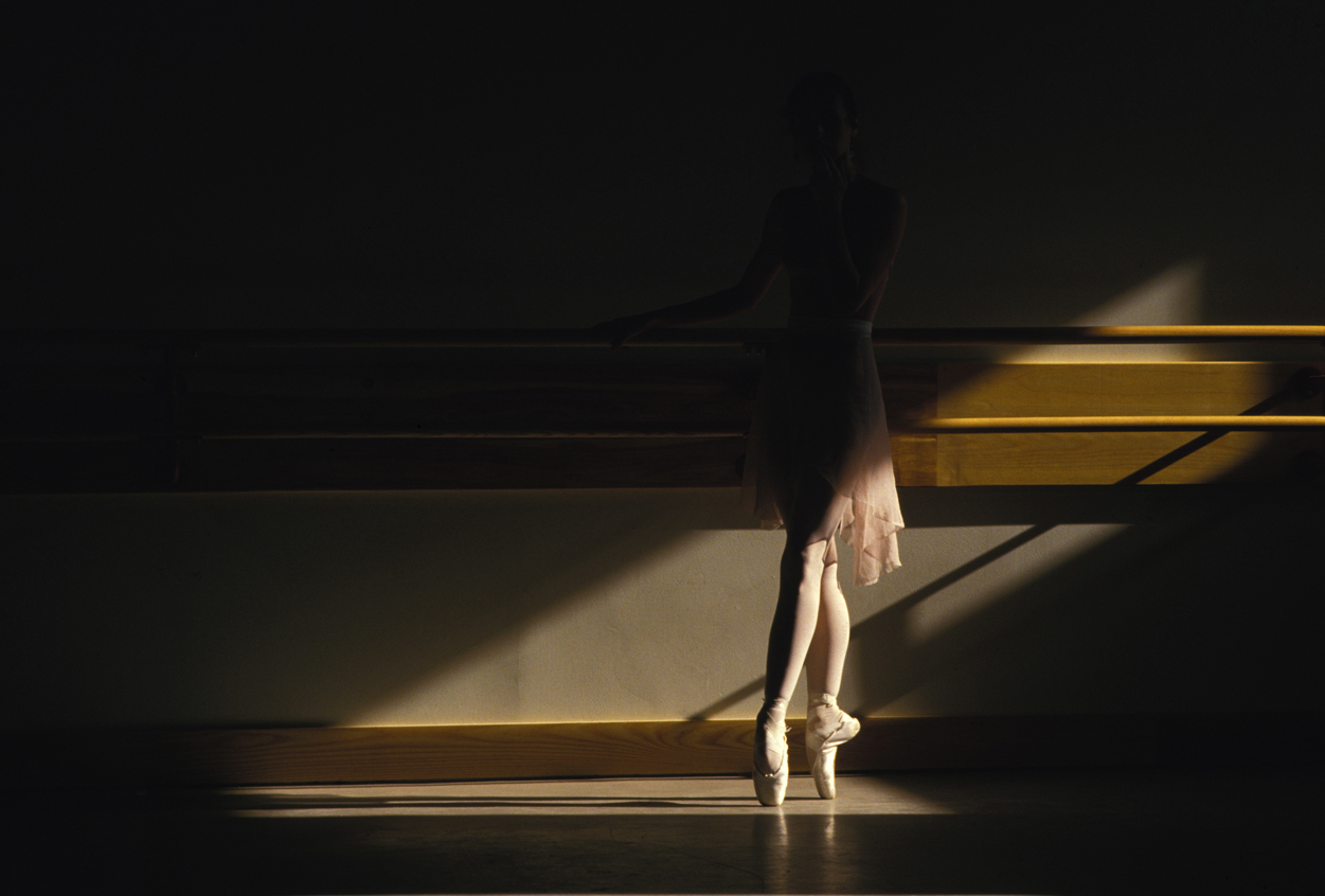 *****Hi-res TIFF for Merlin-net*****HARTFORD 1980's The studios of The Hartford Ballet (and later Dance Connecticut) have skylights and windows that let in shafts of light on sunny days. Debra Collins Ryder is en pointe in one of these shafts of light during a rehearsal. (Courant photo by John long)